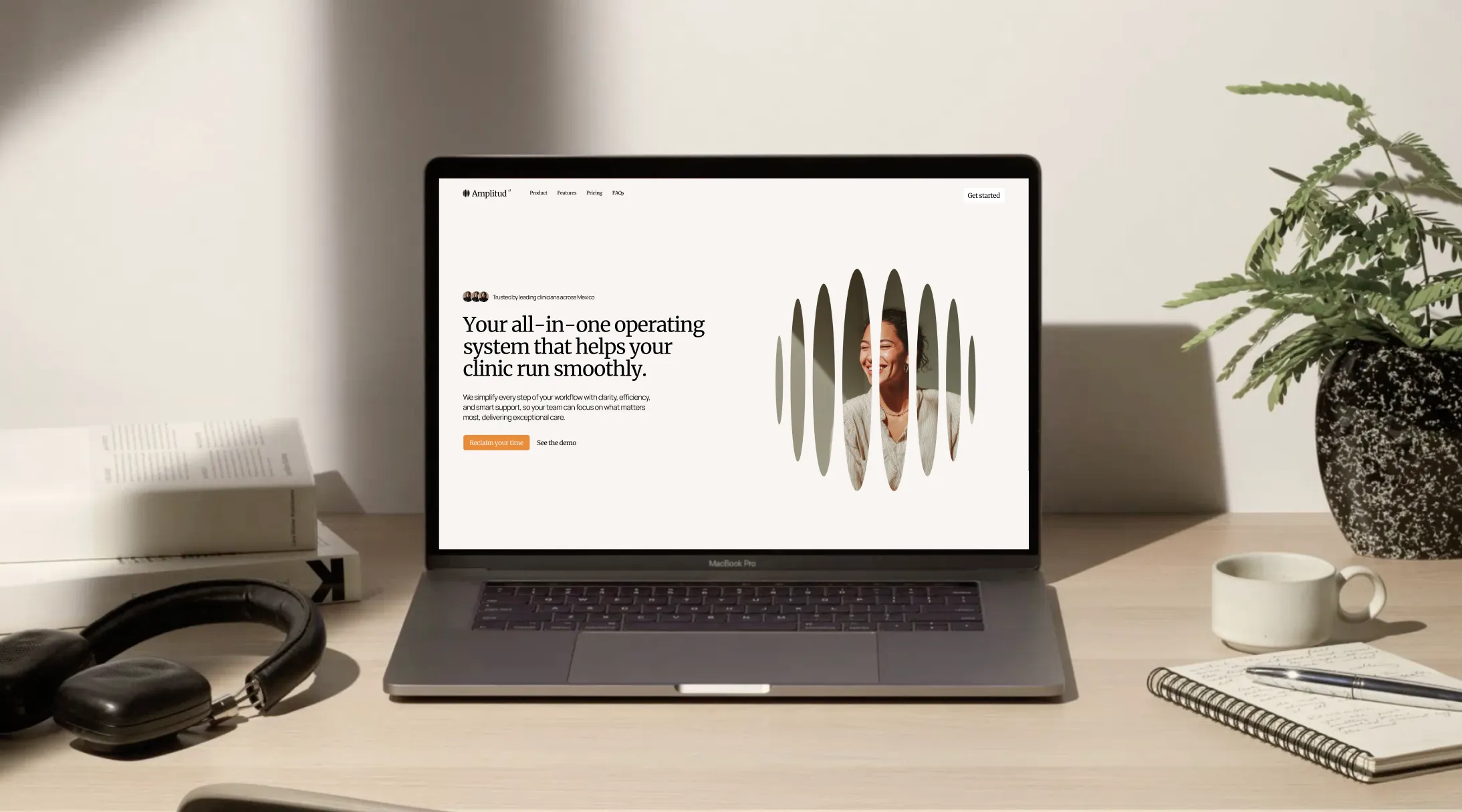 We launched our One-Week Brand Sprint, starting with an intensive onboarding process. This gave us a deep understanding of Amplitud’s business goals, challenges, audience, and competitive landscape. Through collaborative workshops we uncovered the brand’s key positioning opportunity: a trusted ally for clinics, powered by sophisticated yet invisible AI. From there, we built a brand strategy focused on warmth, clarity, and technical credibility. We curated a human-centric colour palette, approachable yet professional typography, and a flexible design system that could scale across both clinical and investor-facing touchpoints. The tone? Friendly but focused. The aesthetic? Soft tech with purpose.