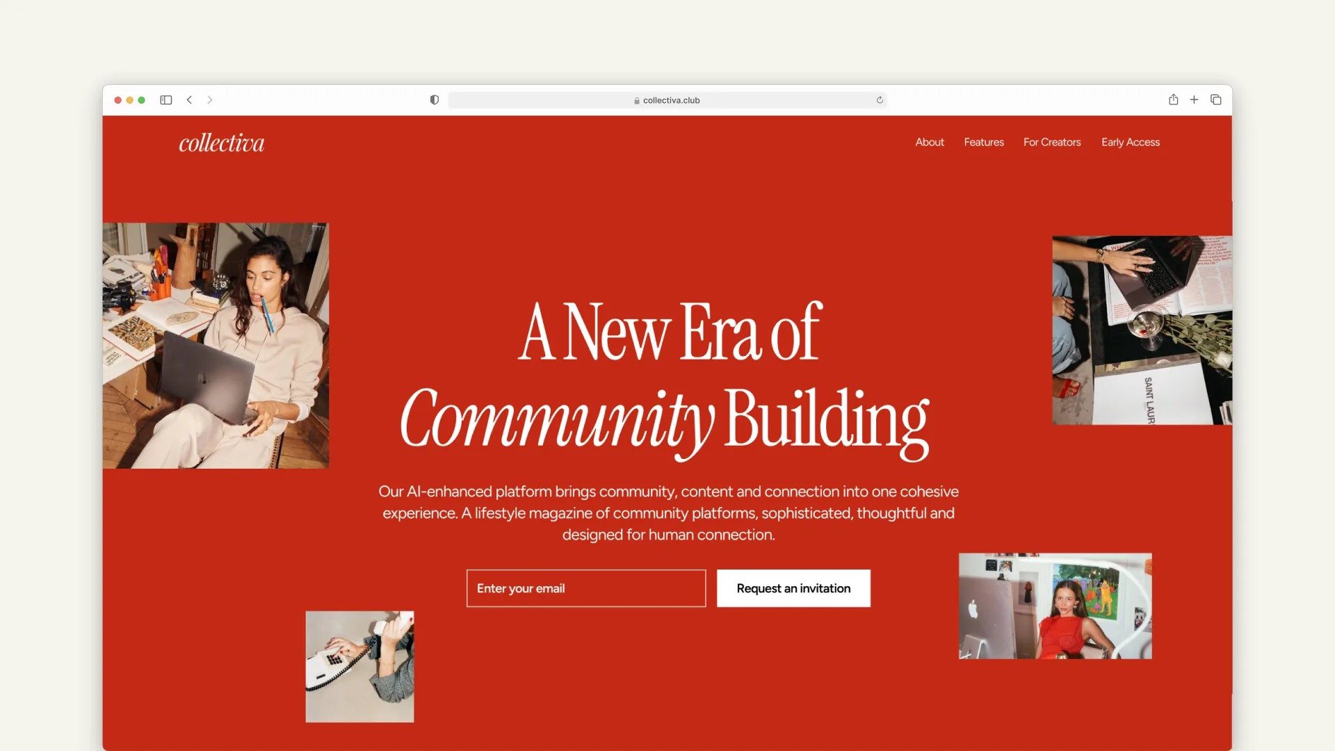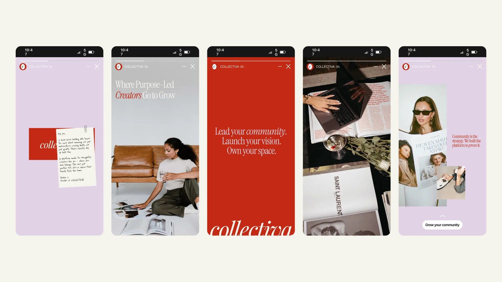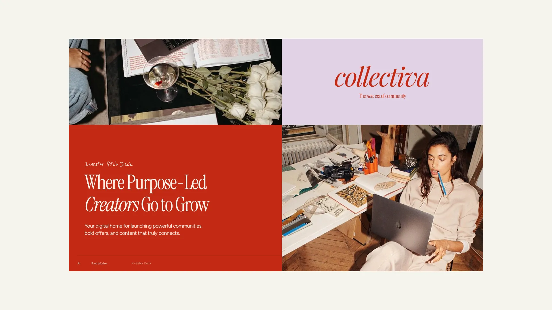 Through our Brand Accelerator, we focused on positioning Collectiva as a platform for creators who care deeply about how their communities feel, not just how they function. The strategy centred on balance. Bringing together the precision of an AI-enhanced platform with the warmth and individuality of human-led communities. Avoiding overly technical or cold aesthetics, and instead creating something that feels considered, expressive, and welcoming. Visually, the identity leans into clarity and softness in equal measure. A refined palette and minimal structure provide consistency, while more fluid elements introduce personality and flexibility. In turn, this has allowed the brand to adapt across different creators and use cases. The system was designed to scale across digital environments where we also completed website design, ensuring the brand can hold presence across product, content, and community touchpoints, while still feeling cohesive and recognisable.