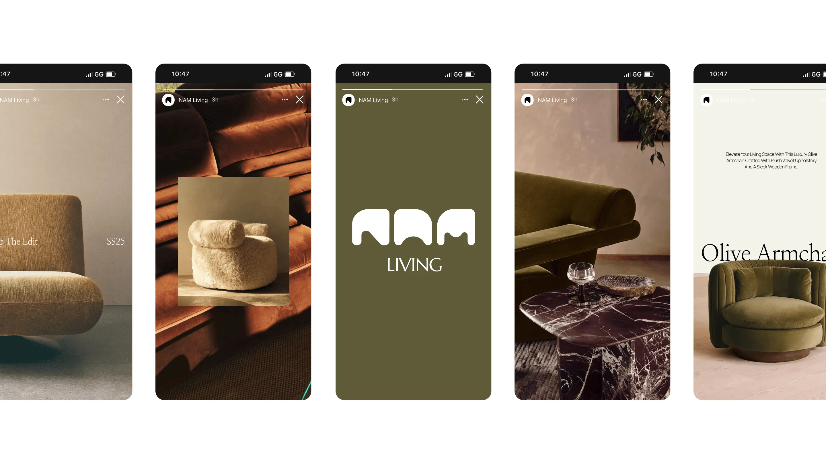 We worked closely with the team at Nam Living to uncover the goals of the business, and most importantly who their initial ICP were - 25-35 year olds, high income earners, city living, who have an avid interest in interior design and editorial aesthetics. Understanding our clients' ICP is for us the foundation of any great brand identify and requires deep exploration into how these people behave - existing brands they interact with and follow, purchasing behaviour and power.